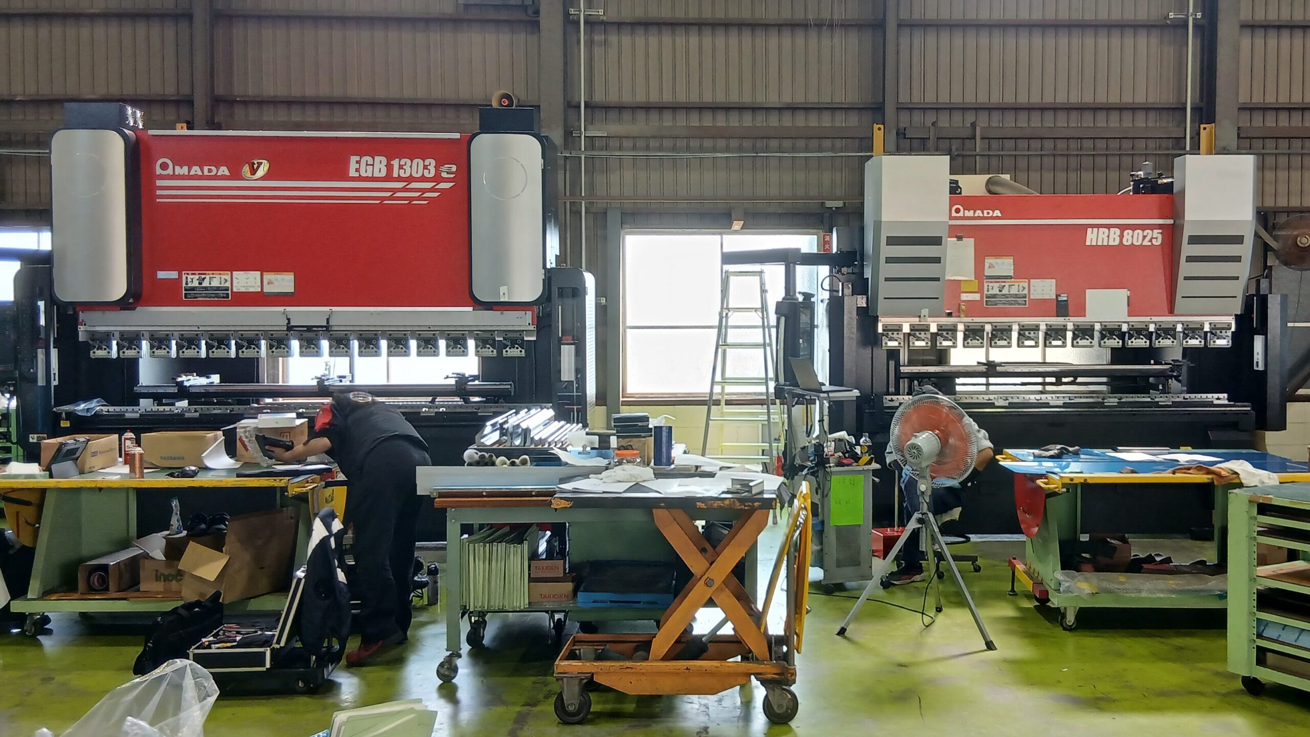 アマダ製EGB 1303eとHRB 8025という2種類のベンディングマシン(板金を曲げ加工する機械)です
